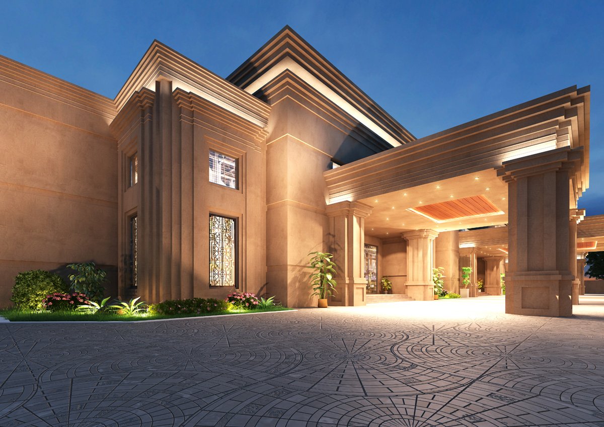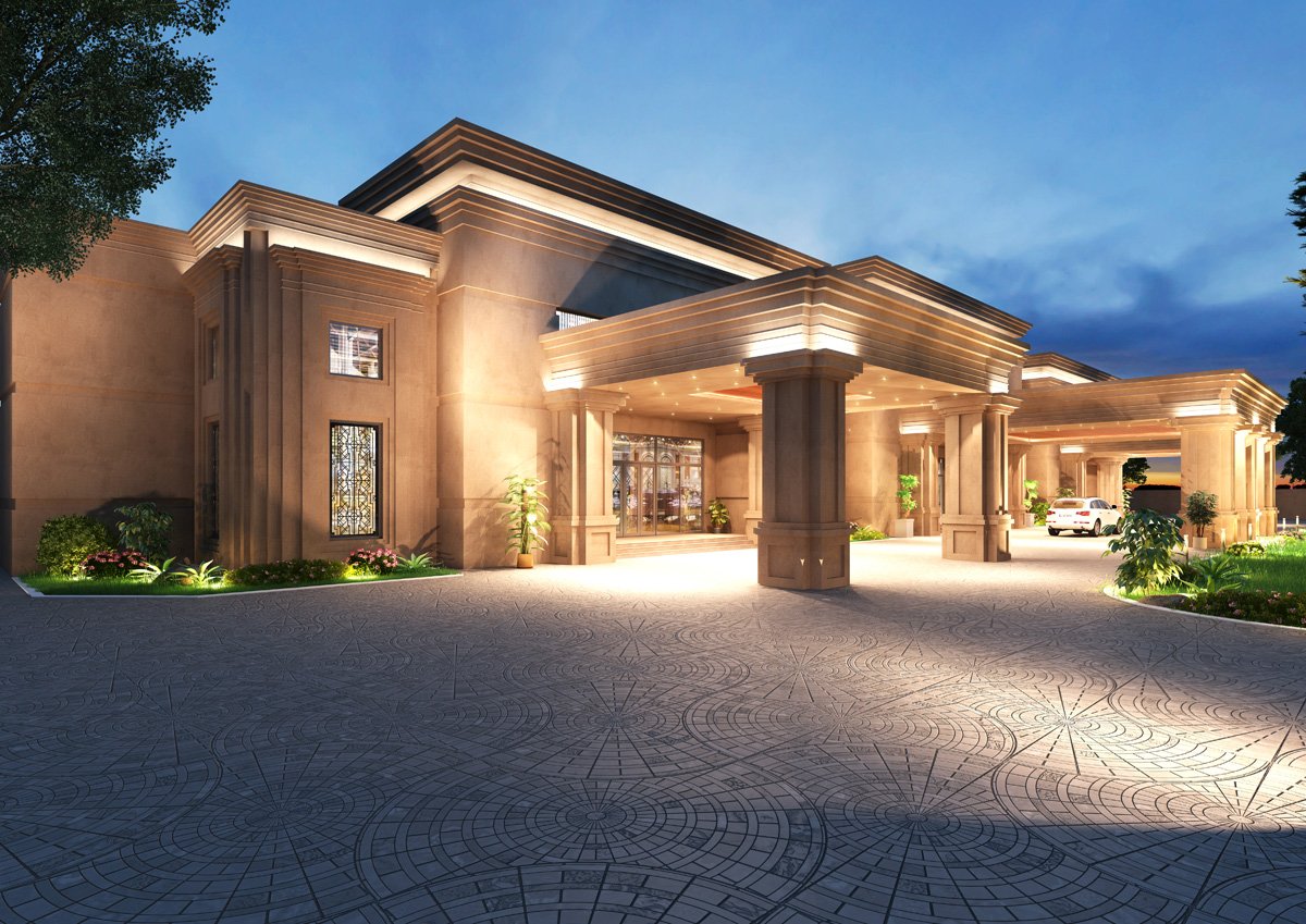 Our main architectural elements include slab cornices and columns. The facilities for thisconcrete structure with 3 entrance podiums include new-fashioned guest bathrooms, a t-shaped lobby and well-equipped bridal rooms.