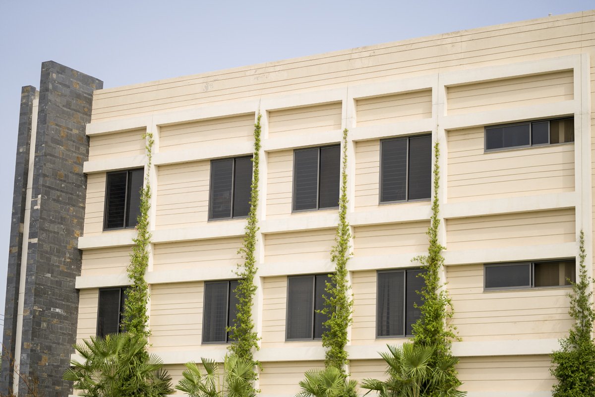 Four blocks have already been constructed, each with distinctive features and design. The facade of every block incorporatesaesthetic vertical slate cladding. As the college continues to expand, this work in progress offers spaces with varying dimensions and requirements for construction.