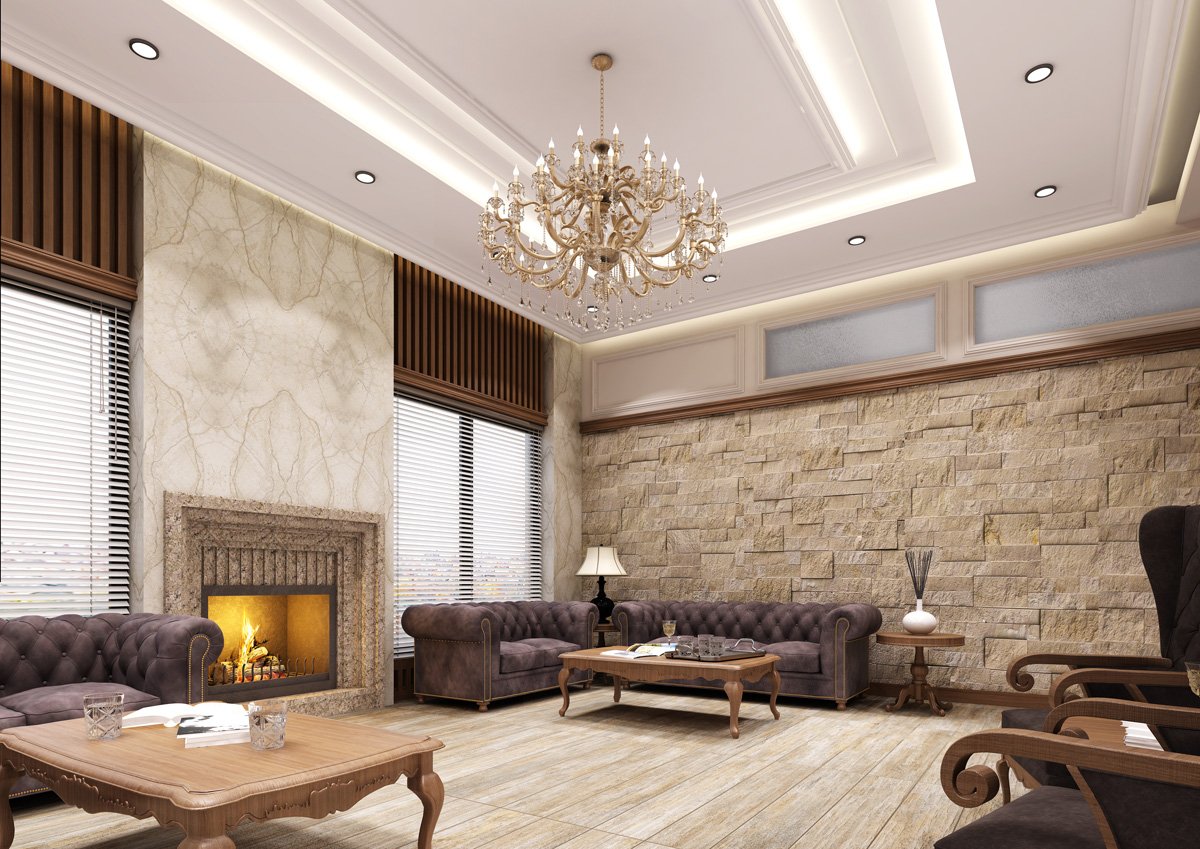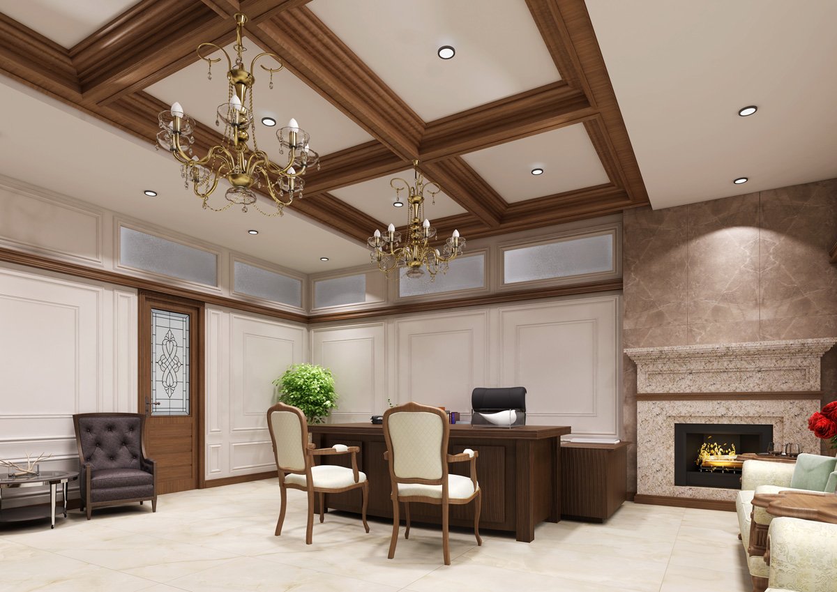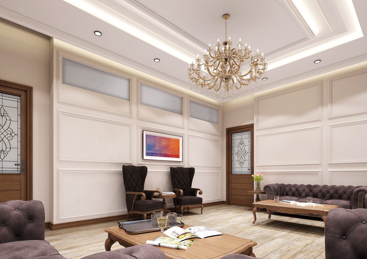 A creative blend of wooden and marble fittings is the core concept of this project. Special emphasis was laid on the renovation of the 20×20 ft office of the CEO, enhanced with a wall-mounted fireplace and a mahogany wooden door with cutting edge glass.AGreek Doric column was meticulouslyconstructed to cover the entrance of the building.